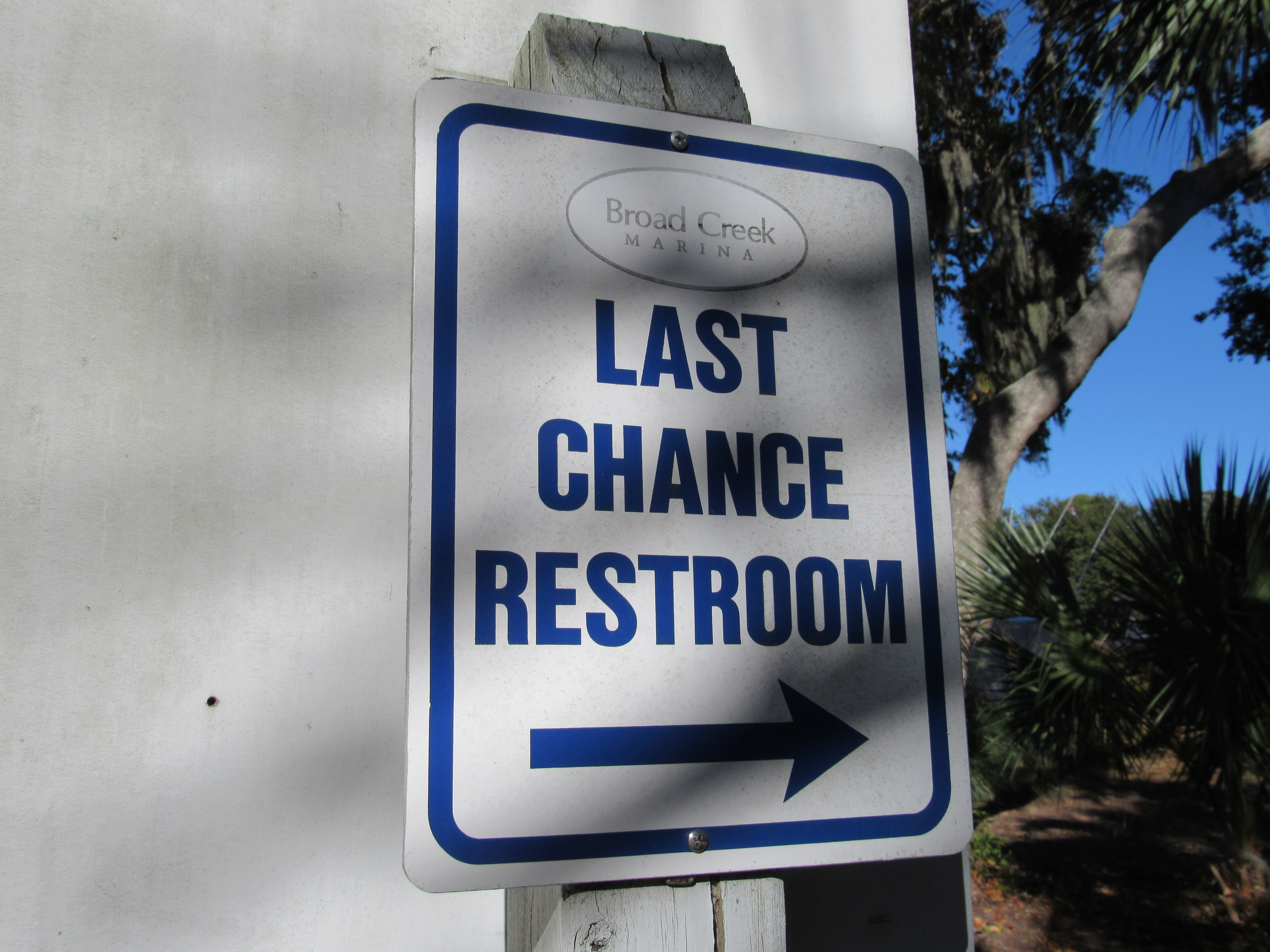 Restroom sign before boarding the ferry
